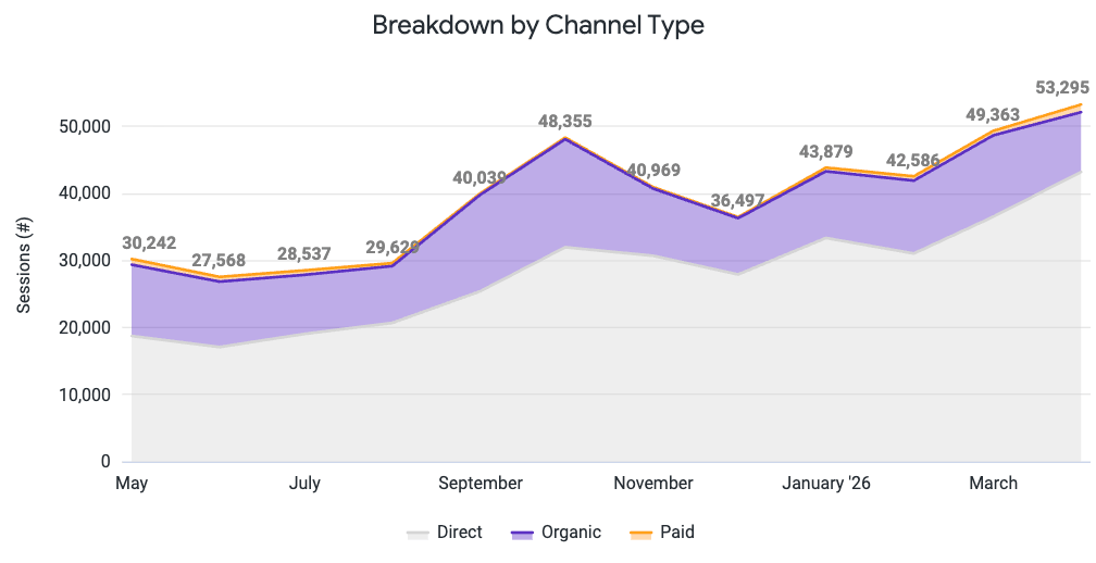 The measurement story we can tell is: brand search volume trends up, organic direct traffic climbs, inbound quality improves in the months we're running heavy. That's the narrative. It's not a clean attribution story. It's a confidence story. And it's true.